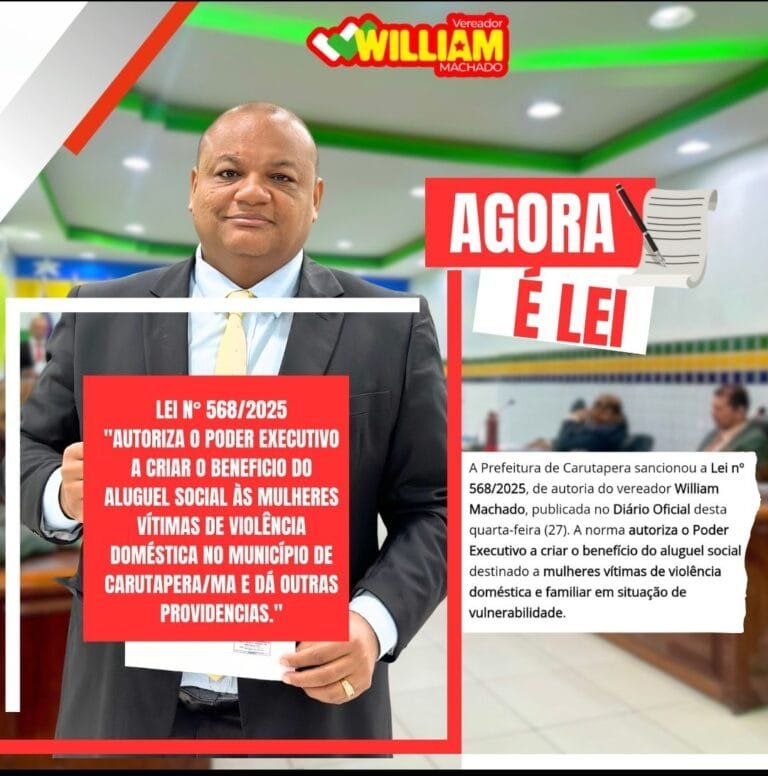 Criada e aprovada na Câmara Municipal de Carutapera: lei sancionada cria o Aluguel Social a mulheres vítimas de violência doméstica.